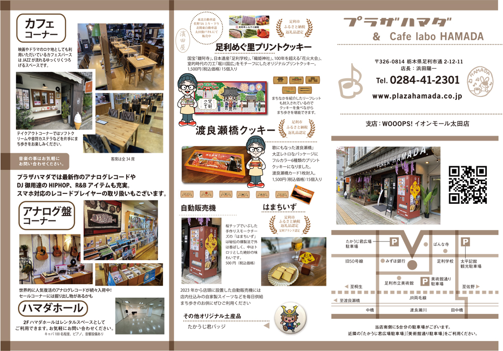 足利市内のまち歩きの時に、お買い物の際に、ぜひ「カフェラボ ハマダ」へお立ち寄りください。 店主自らが材料を吟味し製法にまでこだわったオリジナルのスィーツを始め、産地に着目し抽出方法を工夫したコーヒー、自然有機農法で育てられた茶葉を使ったオーガニック紅茶、 開店以来大人気を博す各種カレーなどオリジナルのメニューが盛り沢山です。ぜひ一度ご来店のうえ、各商品をご賞味ください。